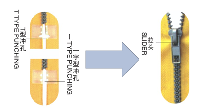 • 特殊定位設(shè)計(jì),有無下止均可靈活定位,保證無下止穿頭后鏈牙整齊閉合。